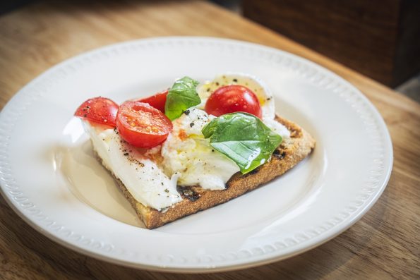 Mozzarella, Basil and Tomato on Bruschetta